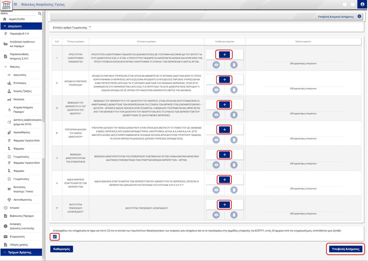 9. Κατεβείτε πιο κάτω και επισυνάψτε (κάνοντας κλικ στα κουμπιά «+») τα δικαιολογητικά που έχετε λάβει από τον λογοθεραπευτή σας: