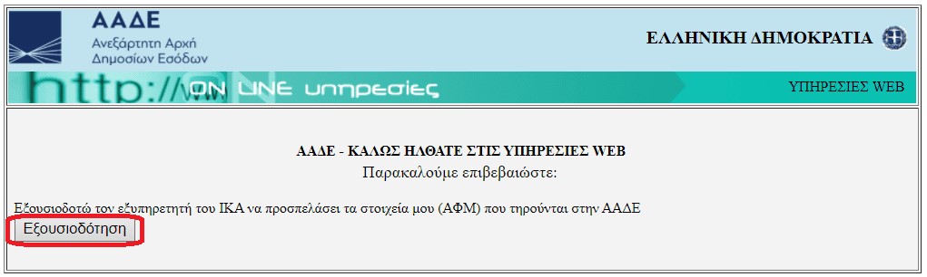 4. Πατήστε το κουμπί «Εξουσιοδότηση» ώστε να προχωρήσετε τη διαδικασία.